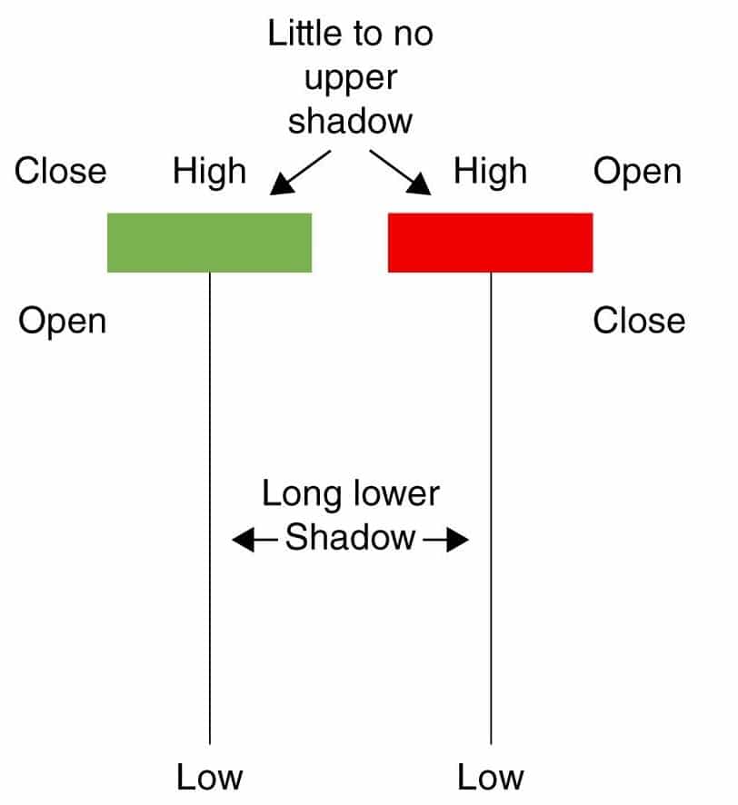 The lower wick is again longer than the body and signifies the vulnerability of the prices. It tells traders that the underlying support may not be strong enough to lead to a quick sell-off.