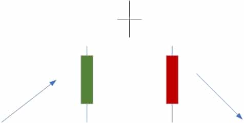 It is a positive candlestick pattern, especially when there has been a downtrend. This pattern is made with three sticks: a short candle, one long red candle, and one long green candle. The ‘Star’ will not overlap with the red and green candles. This pattern shows that the first-day selling pressure is subsiding with the advent of the bull market.